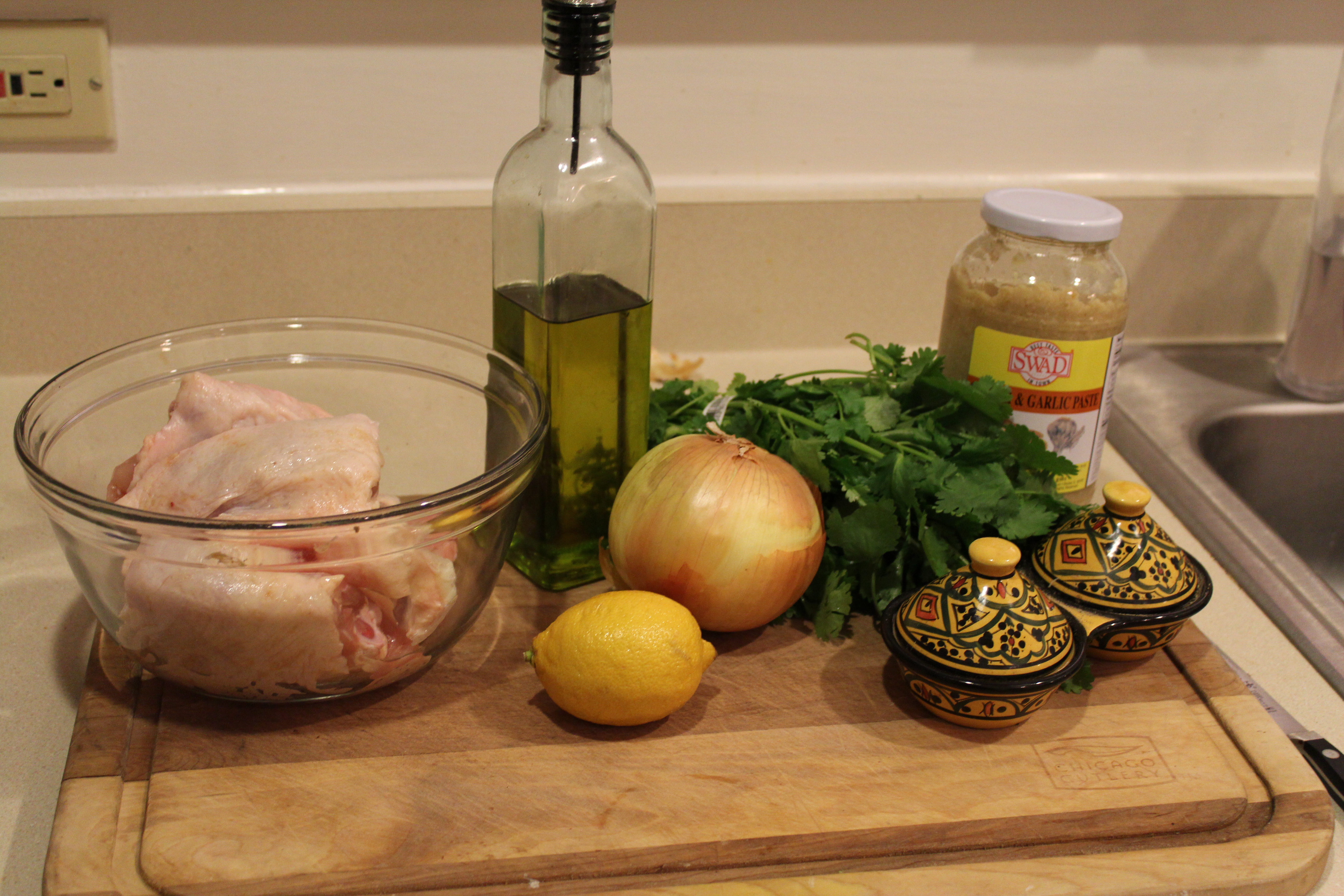 - Brown chicken in single layer in tagine/dutch oven. Brown both sides.