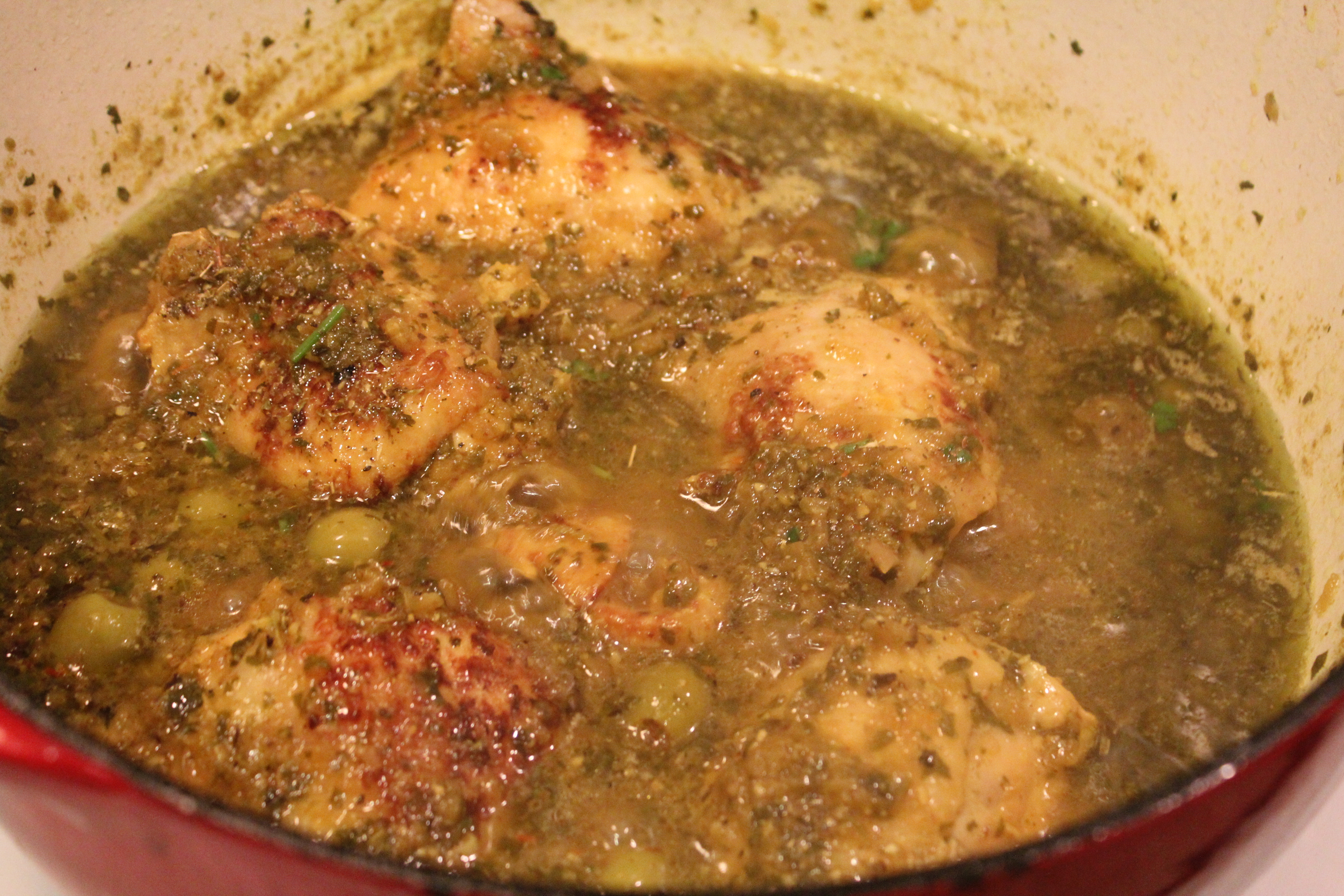Ok where was I – Oh yeah, so now you can put the chicken (and juices….don’t forget the juices) back into the onion/cilantro/spice mixture – and cover with about a cup of water (or until the water is half way up the chicken). Cover with the lid and allow to simmer for 25 minutes.