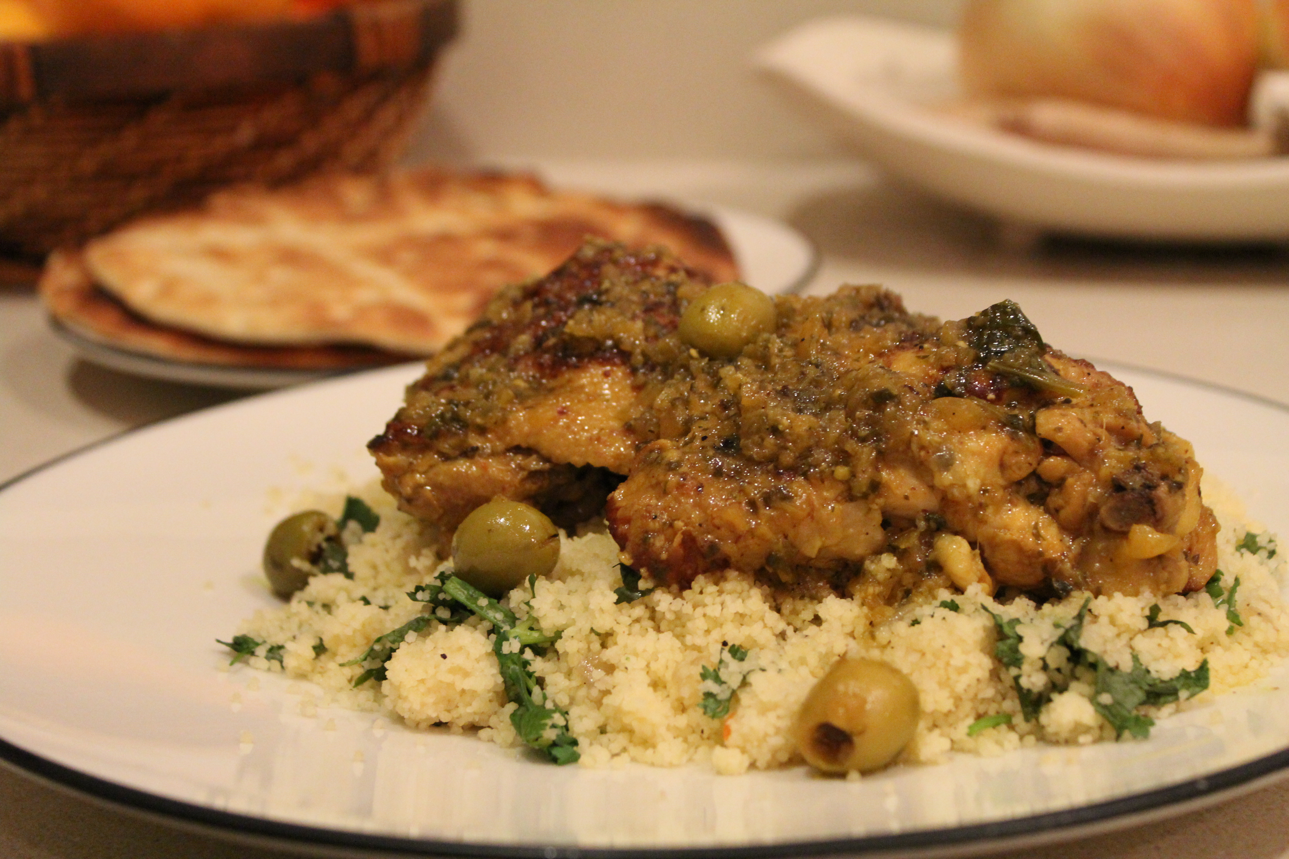 - 10. Sprinkle in preserved lemon, olives, and oregano onto the chicken and stir into the dish.