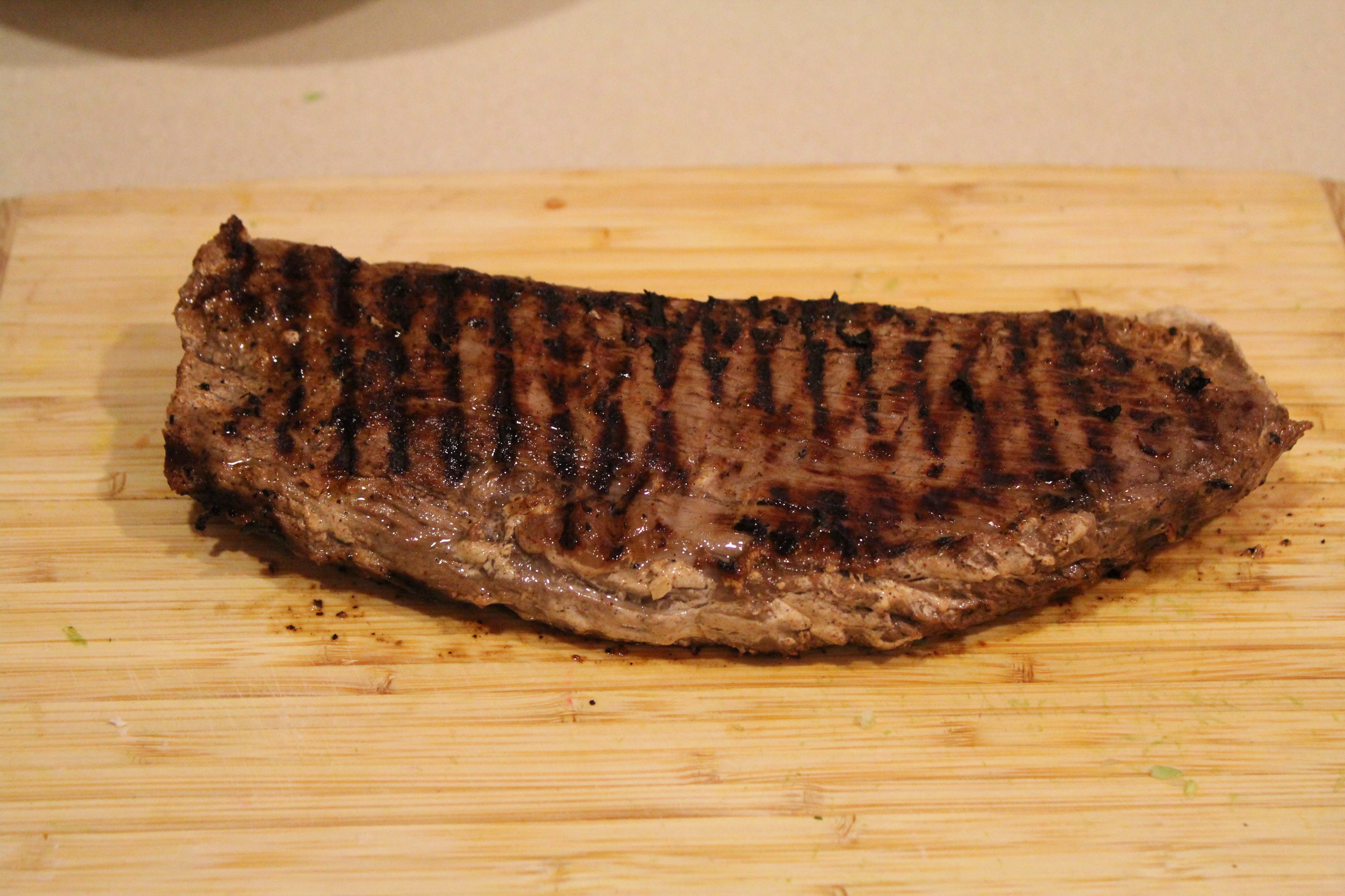3. Wipe off excess marinade from the steak.